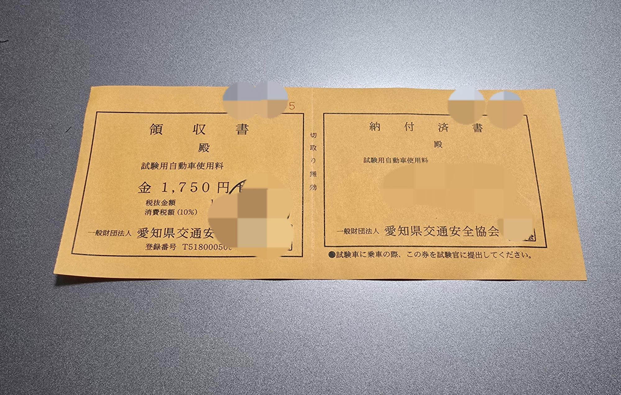 時間になると名前を呼ばれ、返事をして試験用自動車使用料領収書を渡してちぎってもらいます。