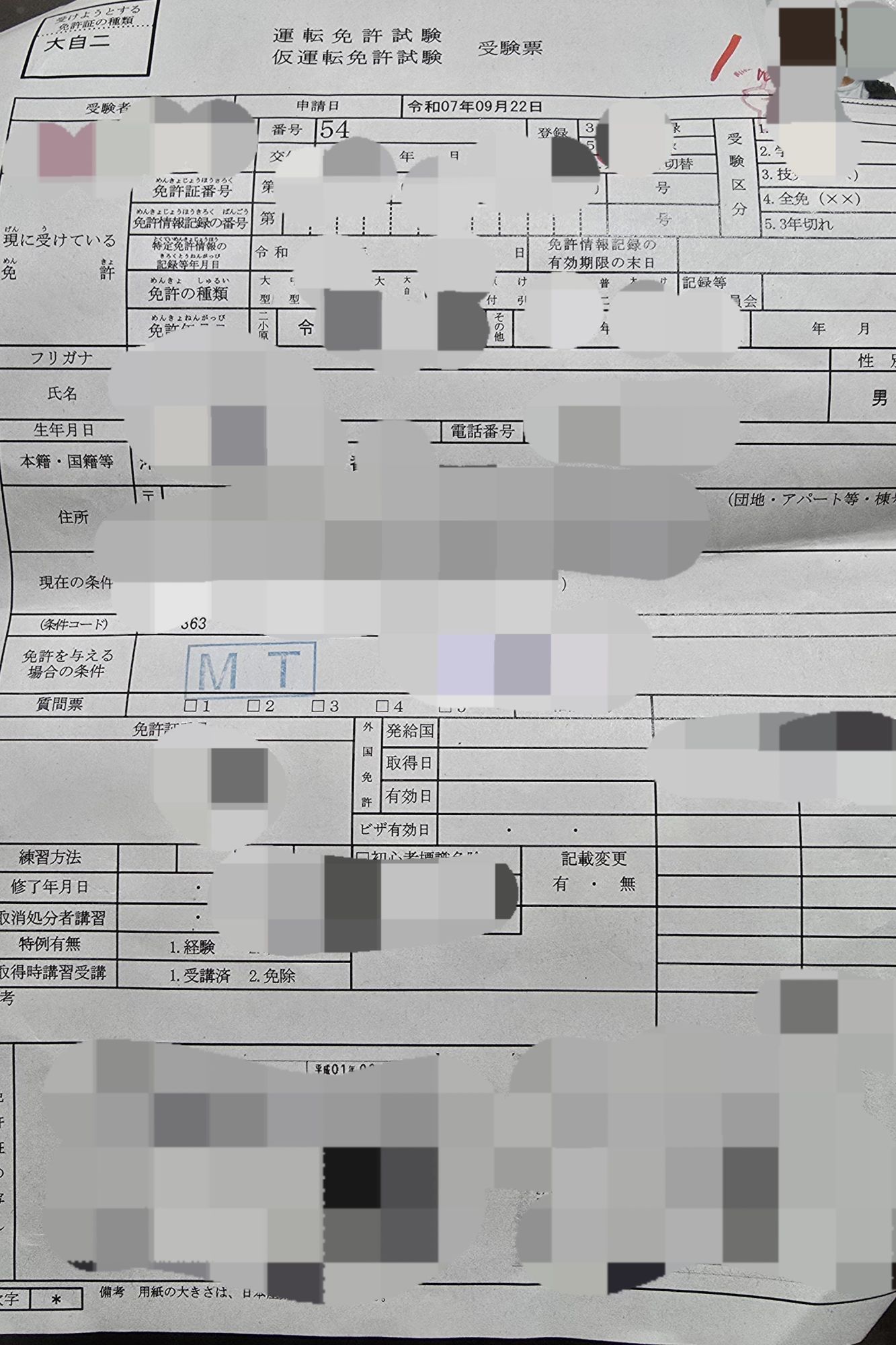 申請書は試験日当日までに全て記入し、視力検査は試験日の朝に行います。
